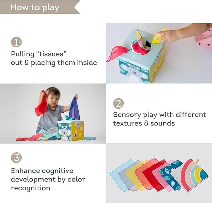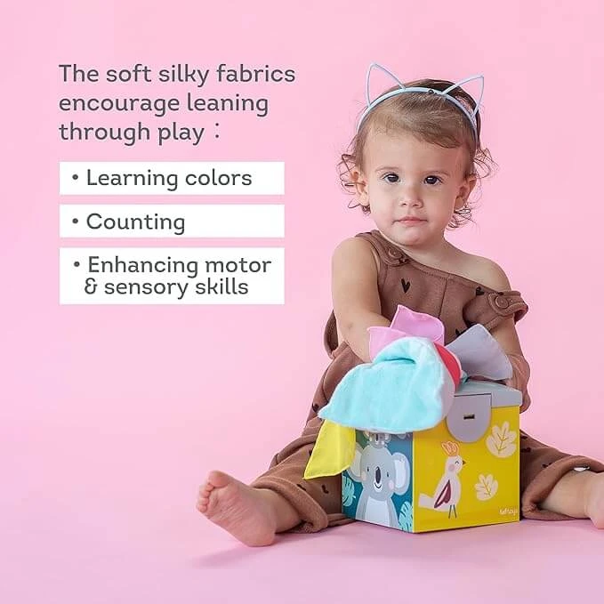 Interactive sensory cube that mimics a tissue box—ideal for toddlers’ natural curiosity ✨