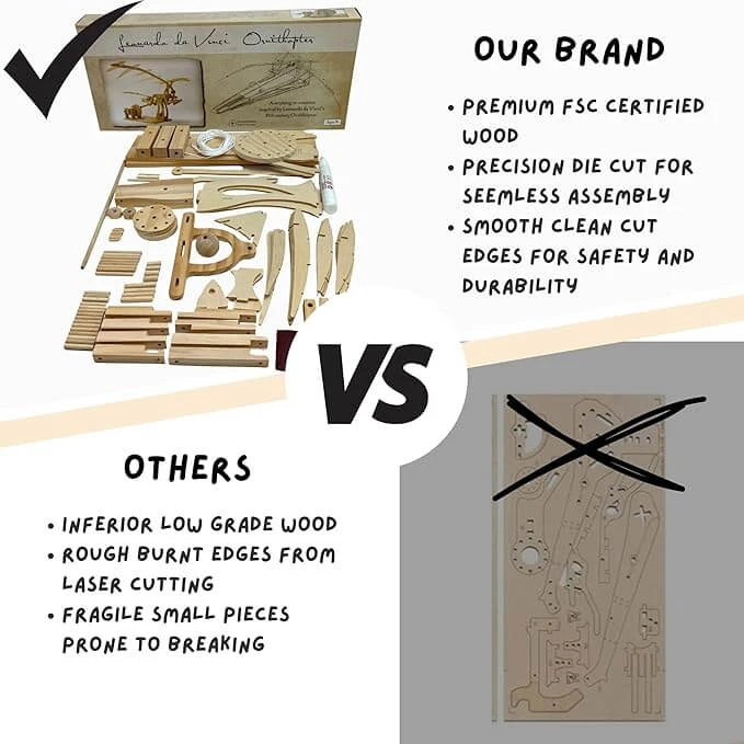 Flying has always been a dream of humans, and Leonardo’s fascination with birds and flight was evident in his studies of birds and different human powered flying machines. His ornithopter design has captured the imagination of people for generations, and we have combined his cool flying machine with one of his bevel gear designs to make a neat working model with flapping wings and a pilot with moving arms and legs.