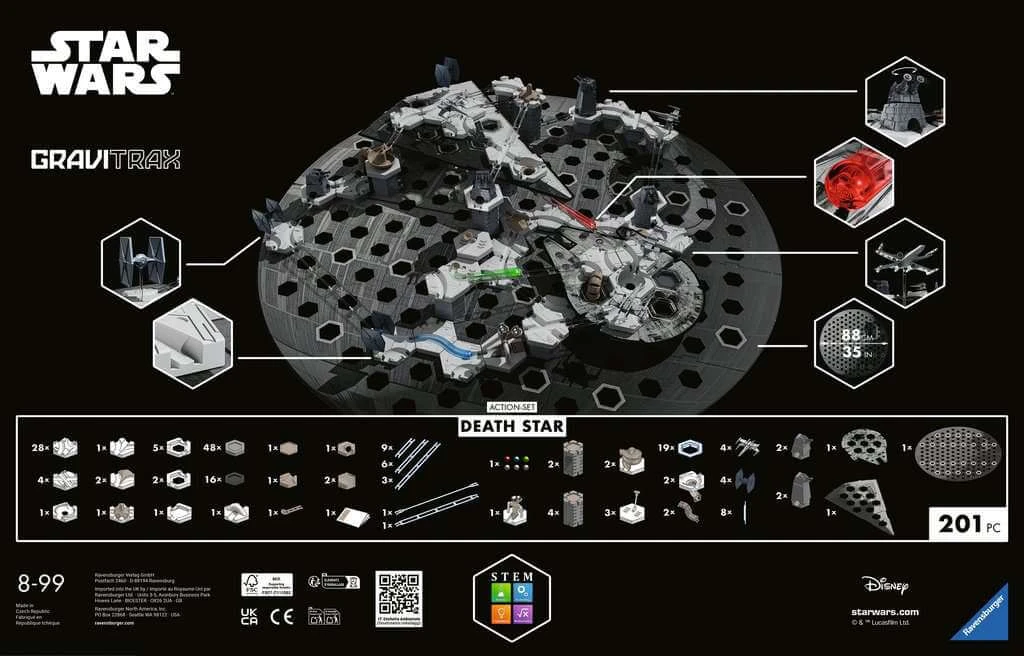 Feel the Force as you construct wild marble run missions with the GraviTrax Death Star Action Set! With over 190 premium-quality pieces and themed elements like the Millennium Falcon and Star Destroyer tiles, kids and Star Wars fans alike can unleash their creativity. A perfect gift for builders who dream in galaxies far, far away 🚀