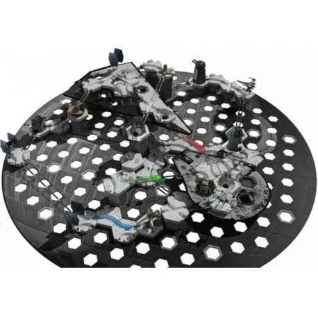 Features unique Death Star baseplate, magnetic cannon, X-Wing and TIE Fighters