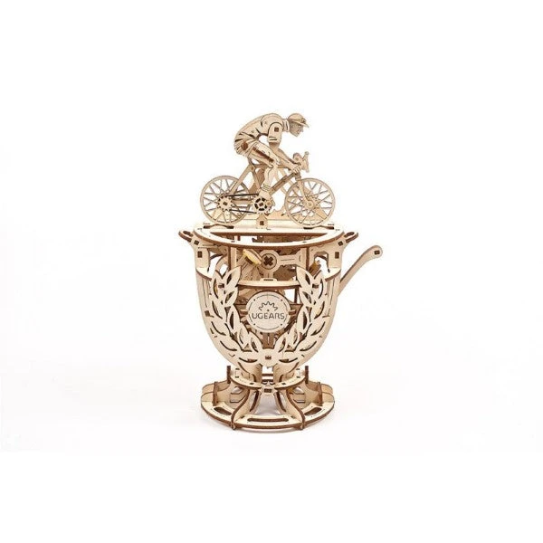 Inspired by classic Tour De France chronicles, this stunning model embodies the spirit of competition, the great sport and even a greater victory. The signature Ugears design makes the Cyclist a fun build and an original décor piece in any home or office space.