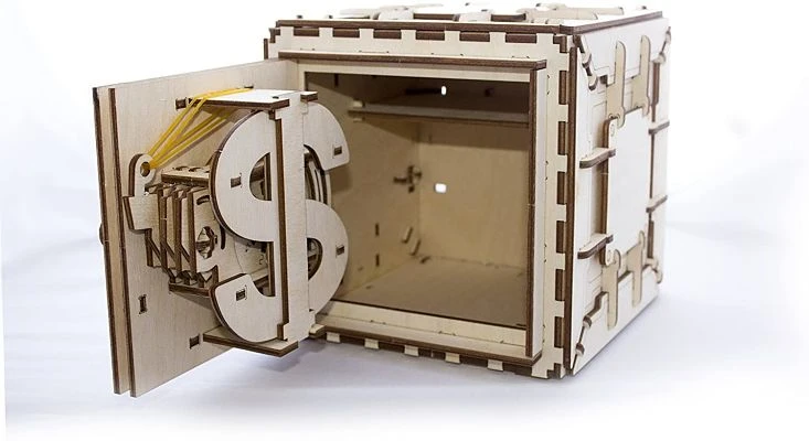 Safety Comes First! If your favorite pastime is tinkering with construction kits and coming up with a neat creation, rest assured the Safe will more than satisfy your artistic urge. This is a 3D puzzle safe that has a real combination lock on the front – it is an authentic replica of its real world counterpart.